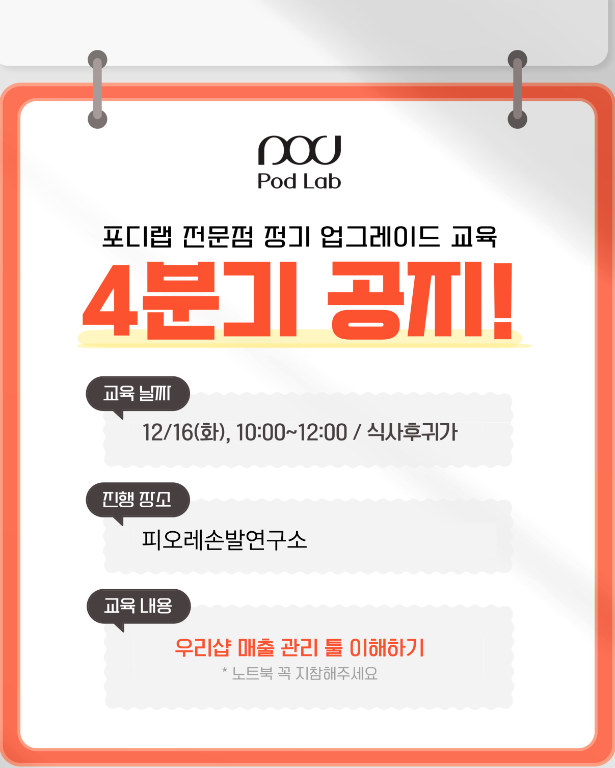 포디랩 전문점 4분기 정기 업그레이드 교육